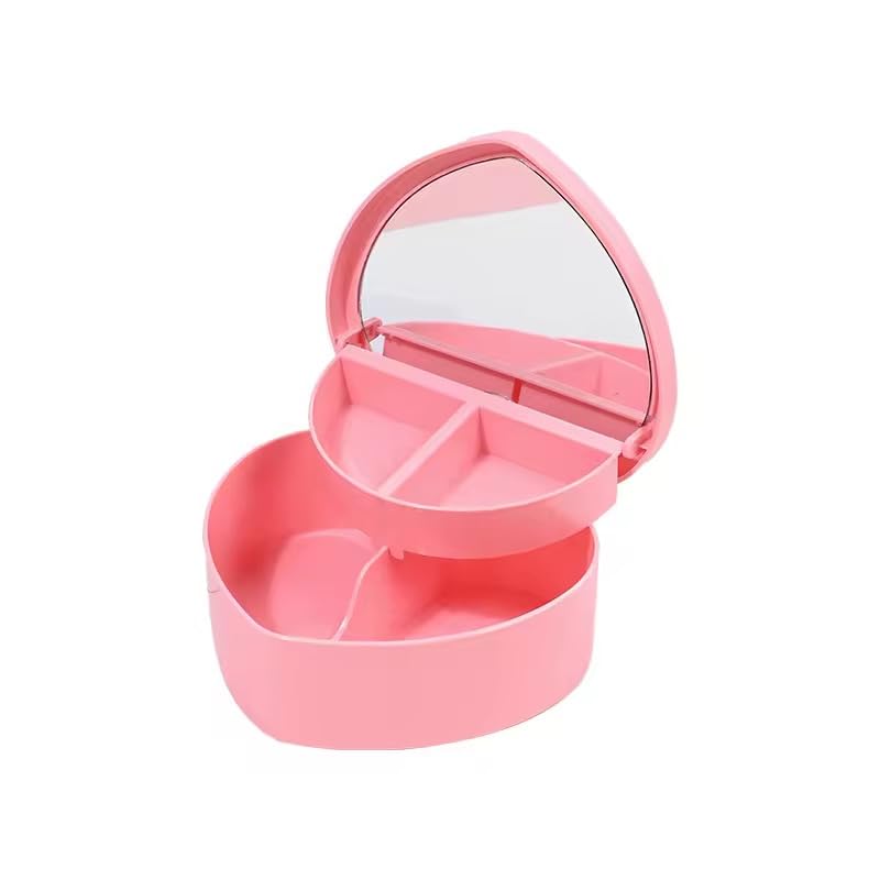 While the compartments are useful for organizing most jewelry, the fixed sections don’t always hold bigger pieces comfortably. The plastic material feels light but not very durable if dropped. The pink heart shape looks charming but might not suit every room style.